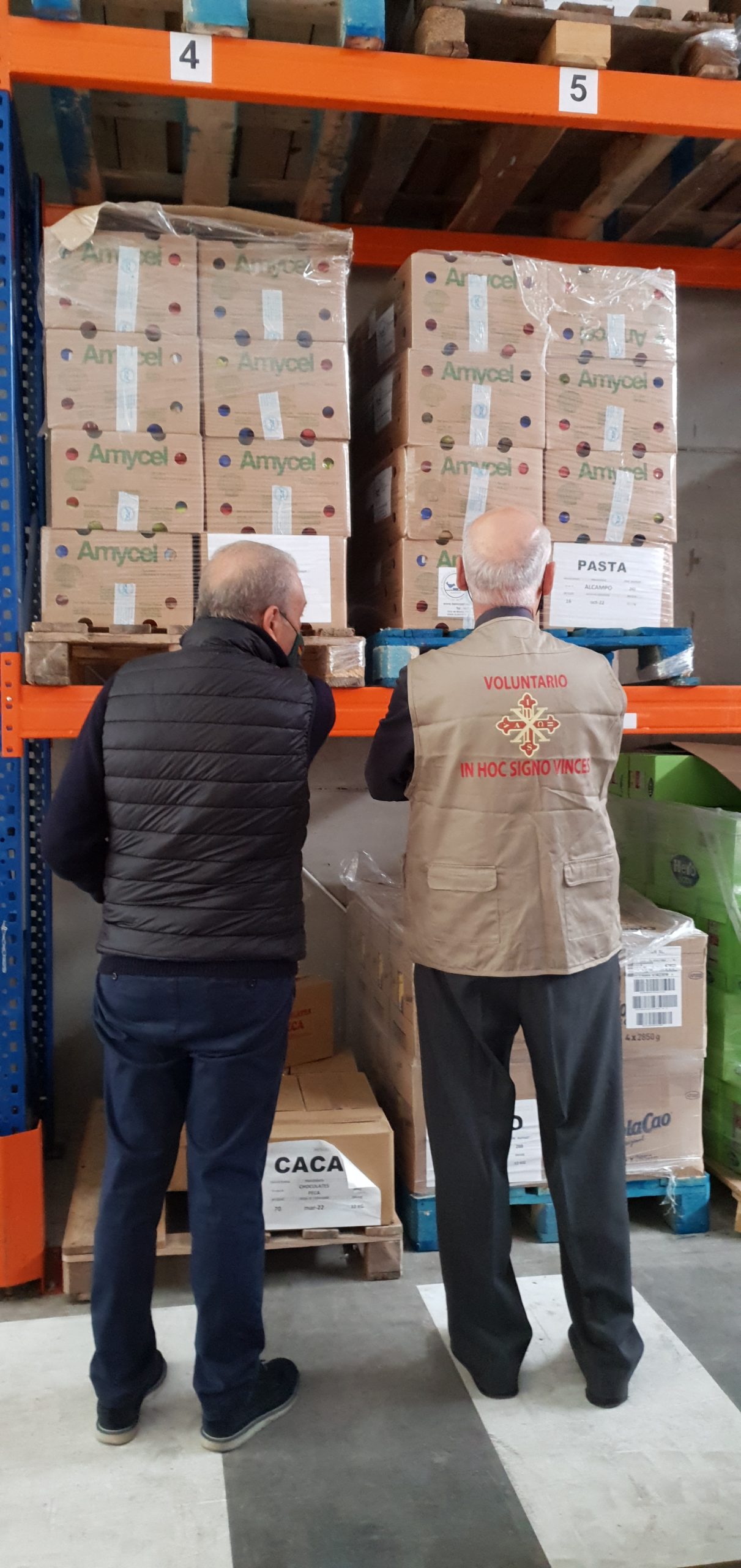 El Delegado y el Prior de la Orden en esa Delegación, Ilmo. Sr. D. Rafael Marcos Pardo e Imo. y Rvdmo. Sr. D. Luis Enrique Martínez Galera, se trasladaron al Banco de Alimentos junto con el presidente de la Junta de Cofradías, D. Antonio Martín Ruiz.