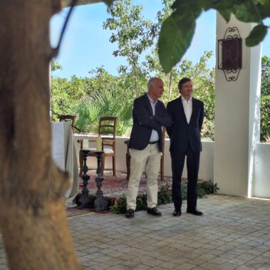 Los asistentes eran recibidos en los jardines de la masía por el delegado de la Orden Constantiniana en Valencia, Ilmo. Sr. D. Francisco Javier Fernández Auñón; el prior el Ilmo. y Rvdmo. Sr. D. José Luis Sánchez García; el anfitrión el Excmo. Sr. D. Antonio Sánchez de León y Cotoner; y el Ilmo. Sr. secretario, D. Ignacio Ballester Borrel.