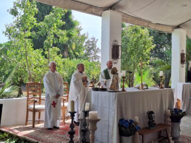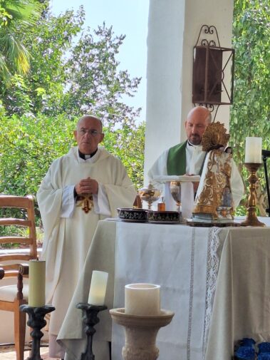 Finalizada la recepción de invitados y los saludos tuvo lugar la misa de campaña. La celebración eucarística estuvo presidida por el prior de la delegación el Ilmo. y Rvdmo. Sr. D. José Luis Sánchez García, acompañado por el Ilmo. y Rvdmo. Sr. D. Jorge Olcina Ferrándiz, Capellán constantiniano y teniente coronel Capellán Castrense y el reverendo D. Antonio Olbier Hernández, delegado de Migraciones en la Archidiócesis de Valencia.