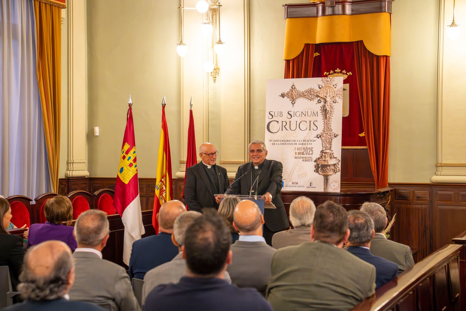 La Diócesis de Albacete ha celebrado su 75 aniversario con la exposición ‘Bajo el signo de la Cruz’, organizada con motivo del 75 aniversario de su creación. La muestra, que los visitantes pudieron observar en el Museo Municipal de Albacete invitaba a descubrir y valorar el rico patrimonio histórico-artístico de la Iglesia diocesana. El obispo de Albacete, Mons. Ángel Román Idígoras, subrayó durante la presentación que la Cruz, eje central de la exposición, “nos tiene que llevar siempre a la referencia de lo que son las cruces cotidianas, del amor de cada persona que se va entregando y que quiere desde ahí llenar de esperanza y llenar de Dios nuestro mundo”