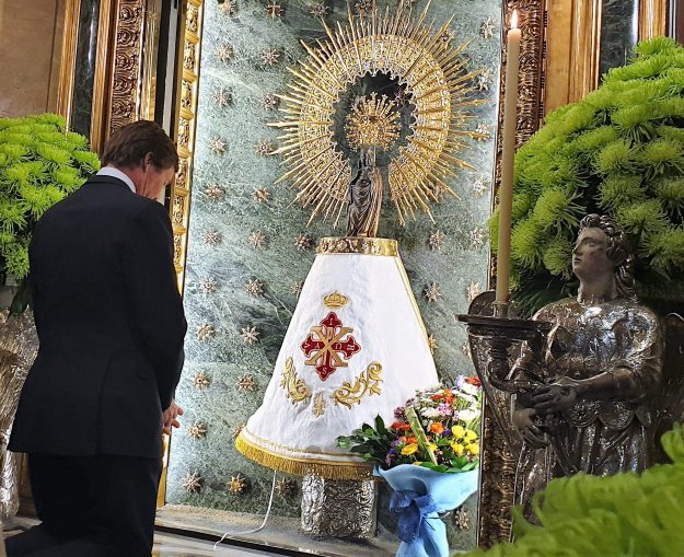 Ofrenda de un manto de la Orden Constantiniana a Nuestra Señora del Pilar
