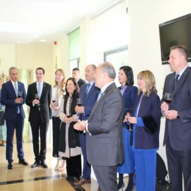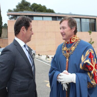 Seguidamente, el Arzobispo de Zaragoza bendijo la mesa y El Duque de Calabria a la hora del brindis, expresó “Quiero reiterar mi agradecimiento al Excmo. y Rvdmo. Sr. D. Carlos Escribano, muchísimas gracias por esa maravillosa celebración y por estar aquí con nosotros, al Ilmo. Sr. D. Francisco Javier Pérez, Rector Magnífico del Seminario, muchísimas gracias a los miembros del Seminario Metropolitano, a todas las Corporaciones presentes y a todos los que nos acompañáis hoy aquí en esta celebración de San Jorge, nuestro Patrón. Mi agradecimiento a todos los seminaristas, que ya son veinte, por su dedicación y esfuerzo en la organización de este acto. Así que por favor vamos a levantar nuestra copa por Su Majestad el Rey, ¡POR EL REY!