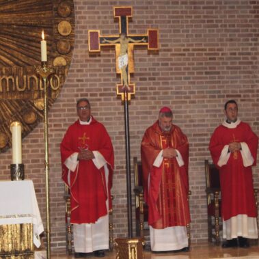 Seguidamente se celebró la Santa Misa, presidida por el Arzobispo de Zaragoza, el Excmo. y Rvdmo. Monseñor D. Carlos Manuel Escribano Subias. Con él concelebraron el Rector del Seminario, R.V. Javier Pérez Más; el Vicerrector, R.V. Esteban Sabater Bayod; el Director Espiritual, R.V. Jesús Abad Trivez; el Director del Centro de Estudios Teológicos de Aragón, R.V. Francisco Génova Omedes; y el Diacono José Manuel Martínez.