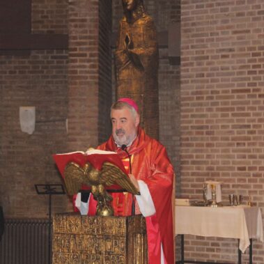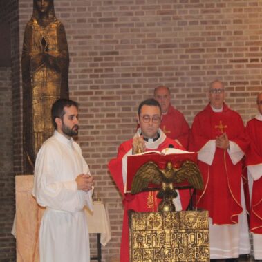 En la Homilía, el Excmo. y Rvdmo. Arzobispo de Zaragoza, Monseñor D. Carlos Escribano Subías, dijo lo siguiente: “Damos la bienvenida a S.A.R. Don Pedro de Borbón, a todos los que forman par-te de la Sacra y Militar Orden Constantiniana de San Jorge, y a quienes les acompañáis esta mañana, aquí en nuestro Seminario Metropolitano. Saludo a nuestros hermanos sacerdotes y también a los seminaristas de esta provincia eclesiástica, que nos acoge en las instalaciones del Seminario. Y saludo también a nuestro Diacono, que acaba de proclamar el Evangelio. Lleva poco tiempo ordenado y esta es la primera celebración que hace aquí, en la que ha sido su casa durante los últimos años.