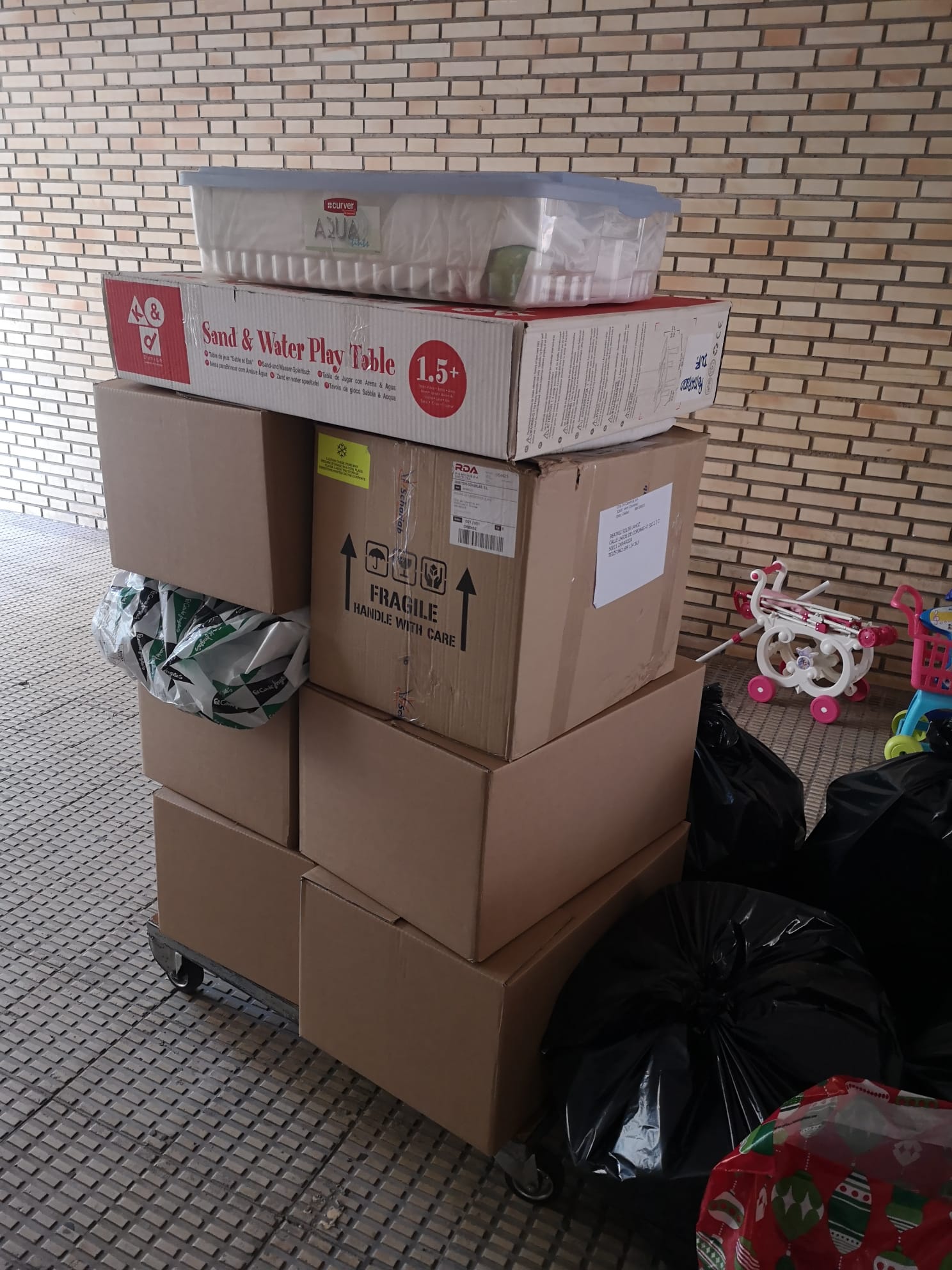 El volumen total es difícil de cuantificar, pero los metros lineales de estanterías eran 55 metros a los que habría que sumar aquellos juguetes que se encontraban en bolsas ya preparadas. Se estima que la cifra superará los 2.800 juguetes, conformándose ocho pallets para su envío.