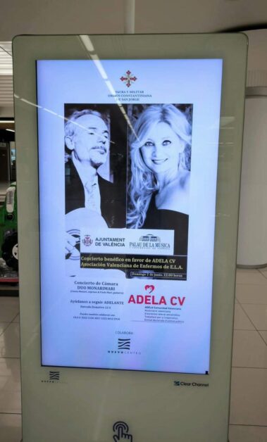 El Palau de la Música acogió un concierto benéfico a favor de los Enfermos de Esclerosis Lateral Amiotrófica. Se interpretarón varias obras, en su mayoría piezas de ópera clásica, que corrieron a cargo del grupo Monarimari, formado por la soprano Cinzia Monari y el guitarrista Paolo Mari. En este sentido, todo el dinero recaudado por las entradas y la fila 0 se destinará a los proyectos que ADELA-CV tiene programados.