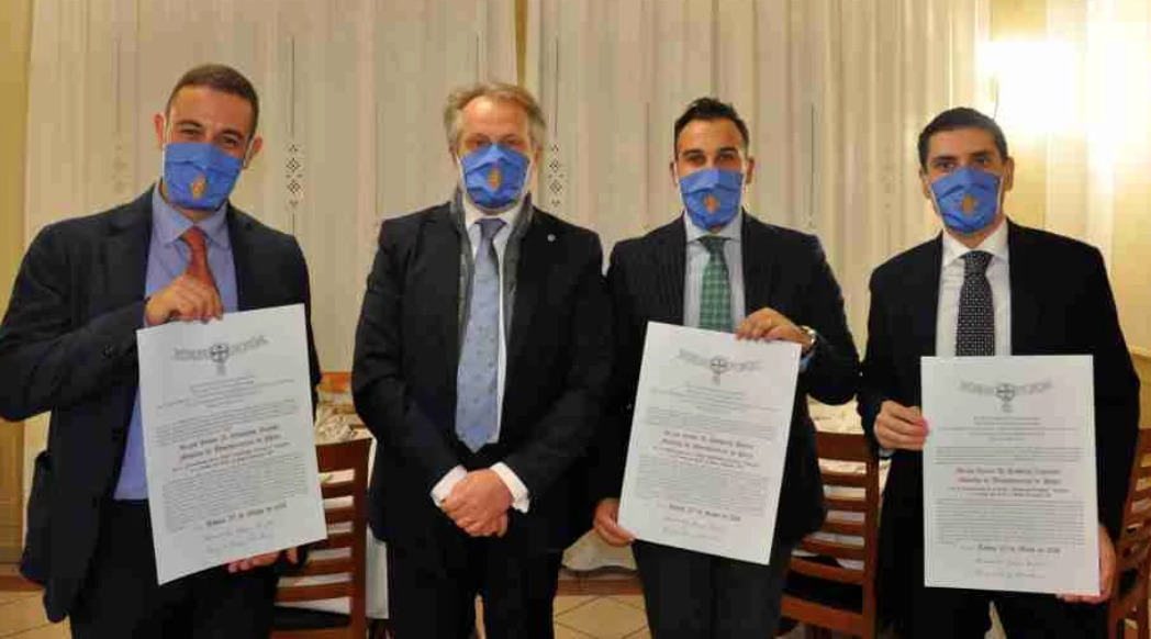 In questa fase di recrudescenza dell’emergenza sanitaria connessa alla pandemia da coronavirus, quale segno di speranza per il futuro e atto di doveroso ringraziamento nei confronti di coloro che si rendono parte attiva nel supportare concretamente le molteplici attività di beneficenza ed assistenza del Sacra Militare Ordine Costantiniano di San Giorgio in Toscana, il Coordinatore per la Toscana Centrale Damiano Landi, Cavaliere di Merito lo scorso 31 ottobre ha accolto nella grande famiglia costantiniana i Signori Roberto Lauretta, Umberto Pierro e Giuliano Russo, che hanno ricevuto dalle sue mani, a nome del Pro Delegato ad interim della Delegazione Toscana Rag. Carlo Testi, Cavaliere di Gran Croce di Merito, la Medaglia d’argento di Benemerenza.