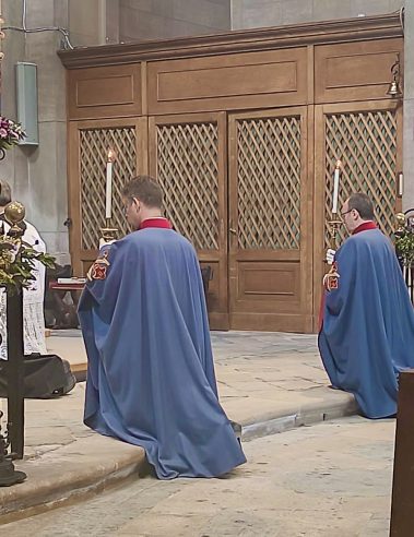 También numerosa asistencia se congregó en torno a la Mesa del Altar en la fiesta más importante del calendario litúrgico: la Pascua. Caballeros y novicios de la Delegación acudieron a la solemne Misa y participaron en diversos momentos asistiendo al Párroco-Prior para dar mayor realce a la ceremonia, que tuvo un magnífico acompañamiento musical y vocal.
