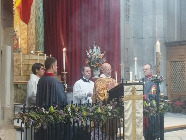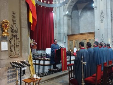 Los caballeros de la Sacra Milicia fueron colocados en lugar preferente en el interior del templo auxiliando al Párroco-Prior en la proclamación del Evangelio de la Pasión de nuestro Señor Jesucristo. Como viene siendo tradicional en las celebraciones a las que acude la Orden en corporación, dos caballeros asistieron en el altar en el momento del lavabo.