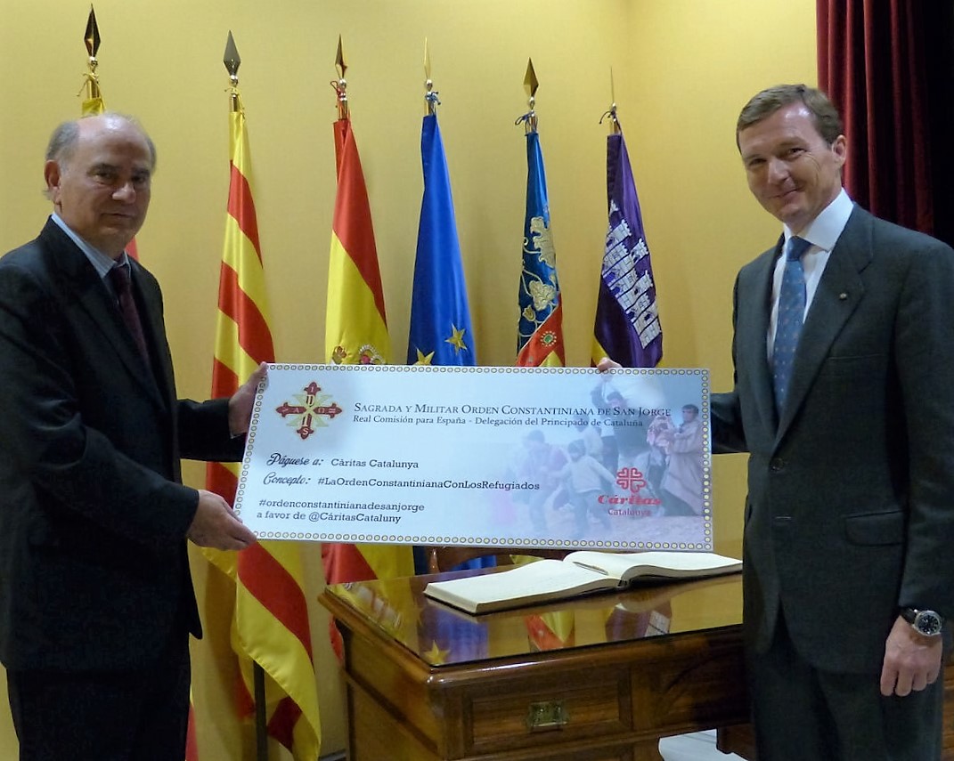 El pasado día 26 se mantuvo una reunión entre S.A.R. El Duque de Calabria, Gran Maestre, con el Secretario General de Cáritas-Cataluña en el Palacio de los Virreyes de Barcelona el pasado día 26 de octubre pasado, en la que S.A.R. hizo entrega de un donativo fruto de lo recaudado en el concierto benéfico «La Orden Constantiniana con los refugiados», organizado por la Delegación de Cataluña con el patrocinio de la Real Comisión para España.