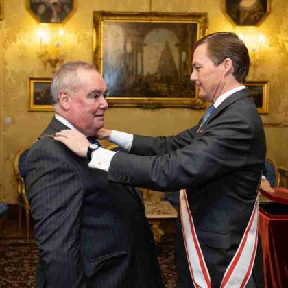 Finalmente confirió la insignia de Caballero Gran Cruz de Justicia de la Sagrada y Militar Orden Constantiniana de San Jorge al Miembro del Soberano Consejo y Regente del Gran Priorato de Roma, S.E. Frey Roberto Viazzo.