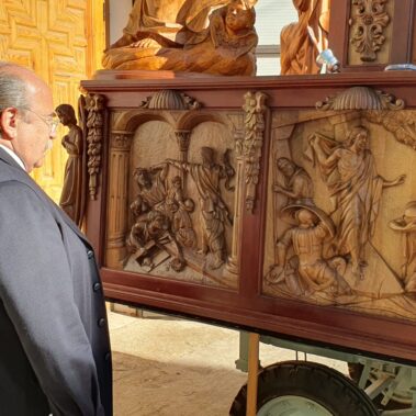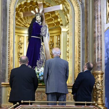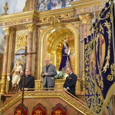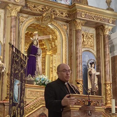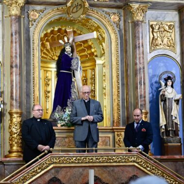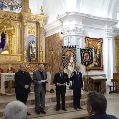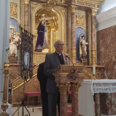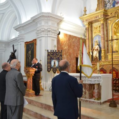 Finalizada la explicación tomo la palabra el delgado de la Orden Constantiniana de San Jorge, el Ilmo. Sr. D. Rafael Marcos Pardo, quién puso en valor el trabajo de tantas personas que a lo largo de la historia han trabajado para mantener, no solo su historia y patrimonio sino defenderlo y cuidarlo, para que las futuras generaciones puedan disfrutar de su belleza, riqueza espiritual y sentir orgullosos por el trabajo que todos han realizado entorno a la imagen de Ntro. Padre Jesús Nazareno. Finalizadas las palabras del delegado de la Orden en Castilla-La Mancha y Murcia, el Prior de dicha delegación el Ilmo. Rvdo. D. Luis Enrique Martínez y Galera hizo una reflexión entorno a la figura de Cristo y llamo al espíritu caballeresco para seguir ayudando en aquellas causas justas en las que cada uno sabe y puede colaborar para la mayor gloria de Dios y las personas que nos necesitan en estos tiempos que corren de necesidad. Todas las personas presentes y venidas de las distintas partes del territorio donde se encuentra la delegación, realizaron varios donativos y compras para ayudar a sufragar los gastos del templo y la cofradía.