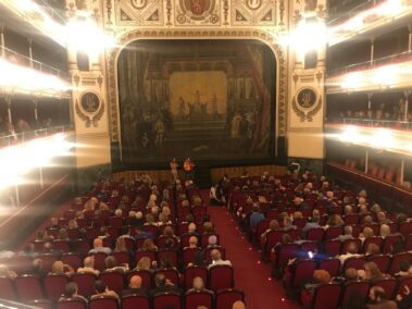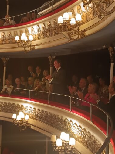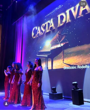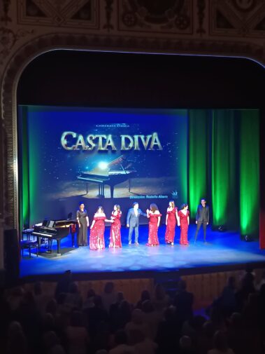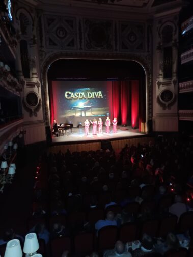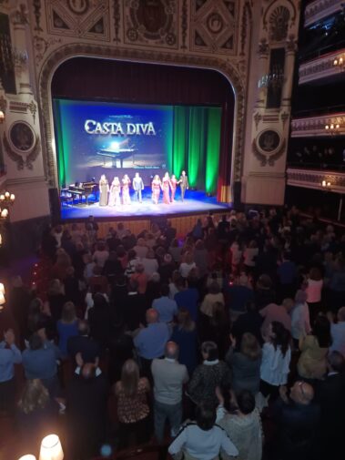 CASTA DIVA despertó gran interés y el Teatro Principal de Zaragoza se hallaba repleto de público, ansioso por disfrutarlo. En el palco principal pudimos ver, entre otras autoridades y personalidades a: S.A.R. Don Pedro de Borbón-Dos Sicilias y Orleans, Duque de Calabria; Sr. D. Jorge Azcón Navarro, Presidente del Gobierno de Aragón; Sra. Dª Natalia Chueca Muñoz, Alcaldesa de Zaragoza y el Excmo. Sr. D. Álvaro Zuleta de Reales y Ansaldo, Duque de Linares. Una vez acomodados todos los asistentes, se alzó el telón y comenzó la función. El espectáculo de belleza sin igual ofrecido al público por Guiomar Cantó, Raquel del Pino, Andreína Williams, Camila Oria y Elisa Lizama, acompañadas por Aylín Pla al piano y Julián Jiménez al teclado.