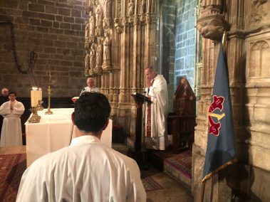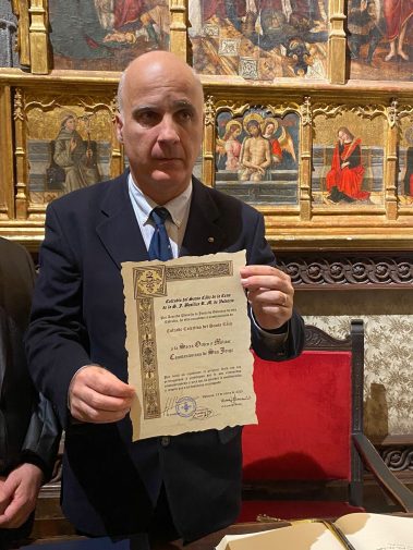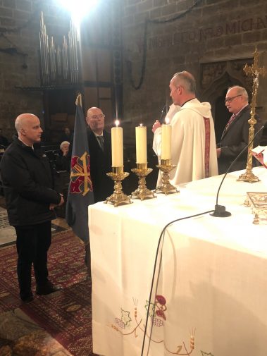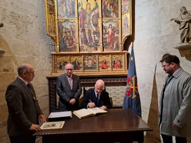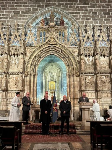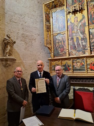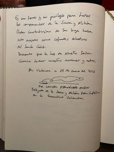En la S.I. Catedral de Santa María de Valencia, en la Capilla del Santo Cáliz y durante la Santa Misa oficiada por el Vicerrector de la Basílica de la Virgen de los Desamparados y canónigo celador del Santo Cáliz, D. Álvaro Almenar Picallo, y ofrecida por el sufragio del alma de las Damas y Caballeros de la Sacra Milicia, tuvo lugar, en la tarde del jueves 19 de Enero, la imposición de la venera como nuevo cofrade colectivo de la Cofradía del Santo Cáliz de Valencia a la Sacra y Militar Orden Constantiniana de San Jorge.
