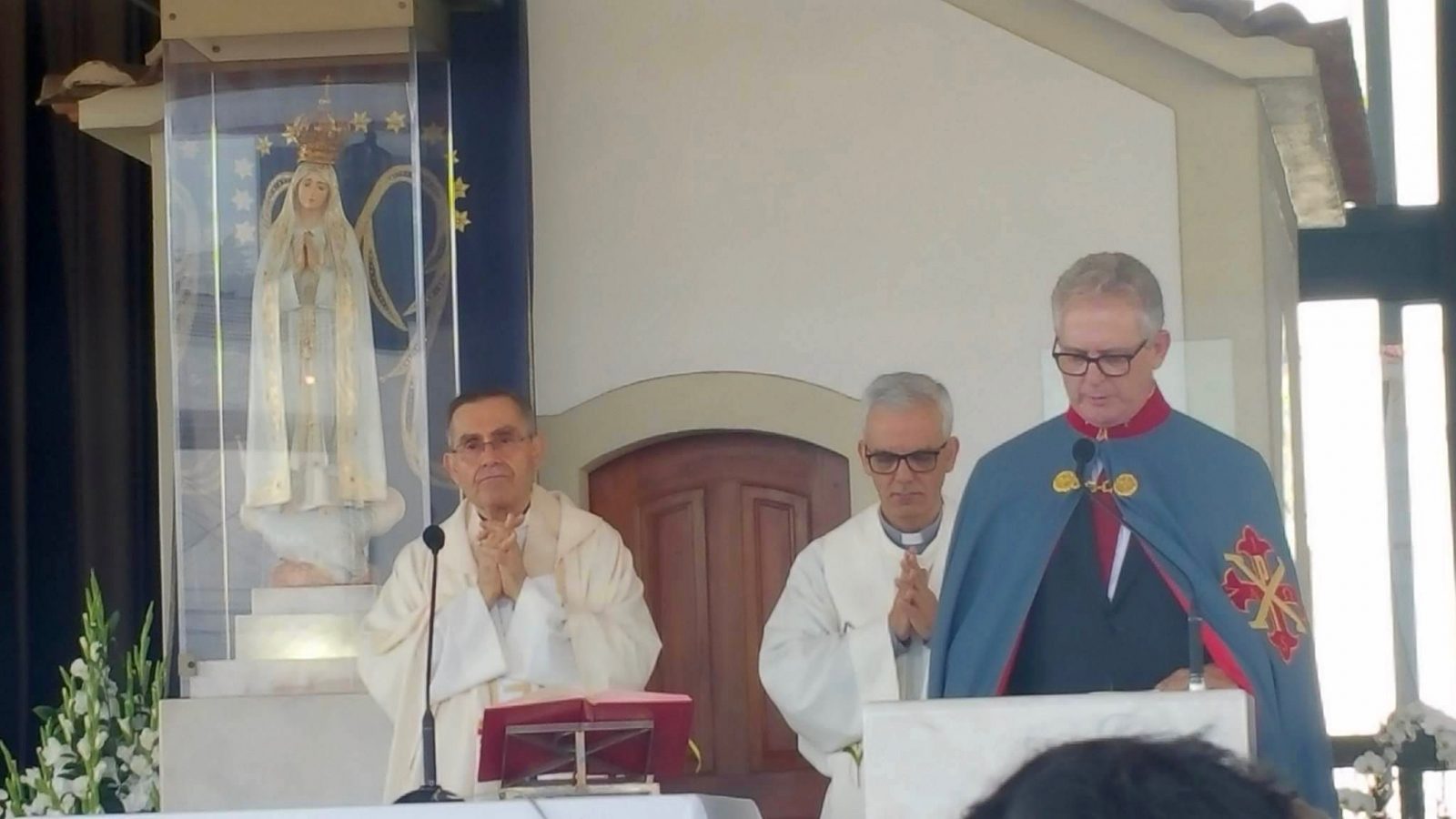 O Revmo. Cónego Armando Duarte, Capelão da Real Comissão, presidiu à Santa Missa das 12.30h na Capelinha das Aparições, e o Cavaleiro João Sacoto Neves fez a leitura da oração universal.