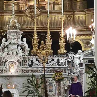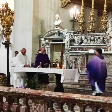 La solemne Santa Misa fue presidida por Don Juan Malo, en español, concelebrando el Rector de la Basílica, Don Luigi Pecoraro. Entre los participantes, además del Delegado por Nápoles y Campania, el Nob. Manuel de Goyzueta di Toverena, de los Marqueses de Toverena y de Trentenare, estaban presentes el Tesorero, Nob. Giancarlo de Goyzueta di Toverena, de los Marqueses de Toverena, y el Príncipe de Melissano, Duque Don Landolfo Caracciolo. El Gobernador de la Hermandad, el Conde Don Giuseppe de Vargas Machuca, también estuvo presente. Todos ellos son Hermanos de la Real Hermandad de Nobles Espanoles de Santiago.