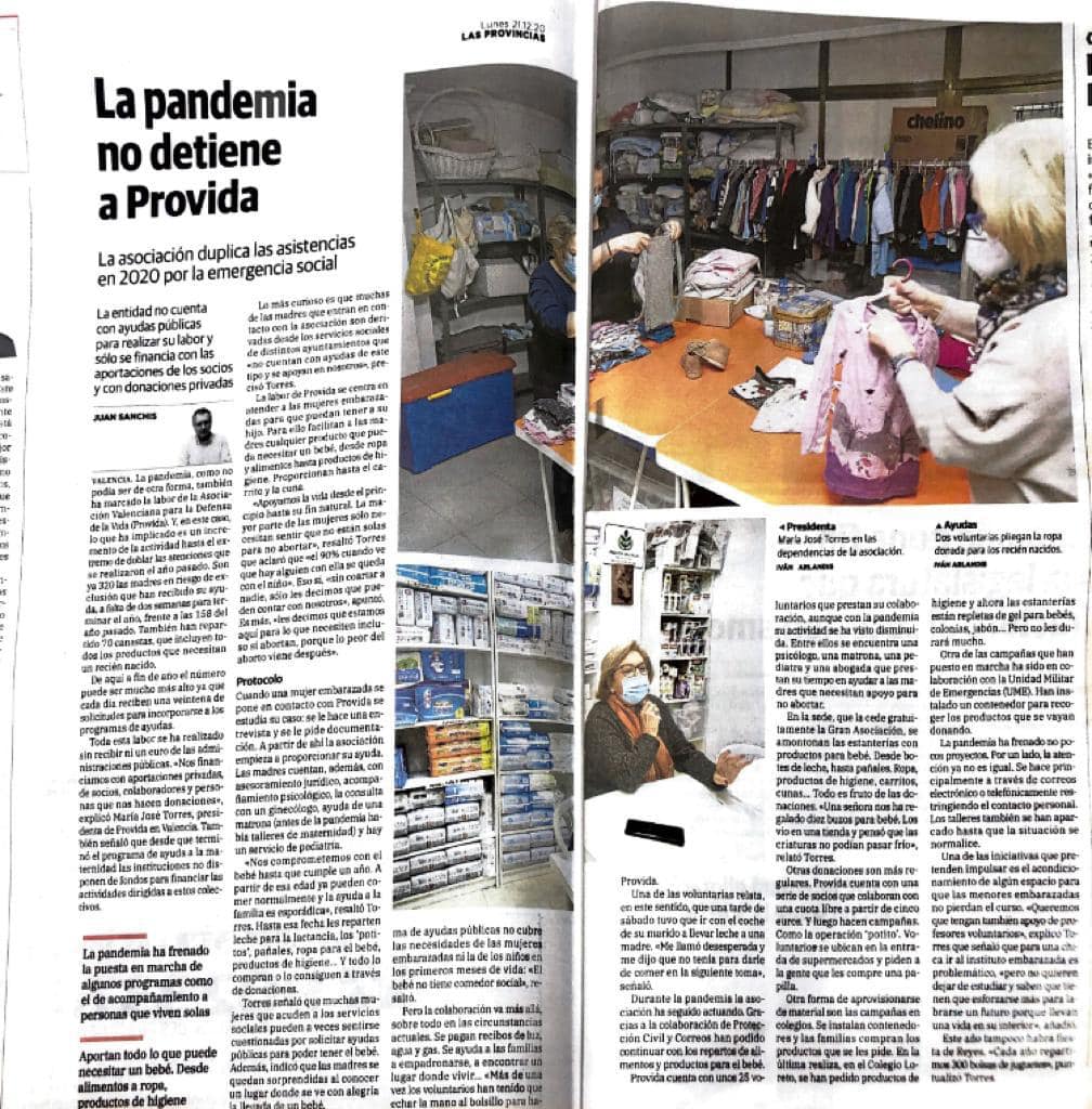 El día 21 de diciembre varios caballeros en representación de la Delegación en el antiguo Reino de Valencia hicieron entrega a Provida, organización católica que se dedica a la ayuda de toda madre soltera que no cuenta con suficientes recursos para mantener a sus bebés: biberones, leche 1, leche 2 , pañales. Todo lo relacionado con los recién nacidos en productos farmacéuticos.Otro pack, similar se entregó a la Casa Cuna Santa Isabel, gestionado por religiosas, con el mismo fin de ayuda a madres solteras, maltratadas, o cuidan de sus bebés mientras salen a trabajar.
