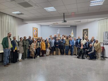 Antes de realizar la foto de familia, el delegado de la Orden en Castilla-La Mancha y Murcia, Ilmo. Sr. D. Rafael Marcos Pardo realizo una reflexión sobre todo lo que se había comentado allí, recordando palabras del Papa Francisco pronunciadas en la Santa Misa realizada con ocasión del Jubileo del mundo del voluntariado. En su homilía no solo agradeció a los voluntarios su gran compromiso, sino que los invito a ser ejemplo de Jesús, recordando que “ustedes sirven al prójimo sin servirse del prójimo”. Con estas palabras el delegado dio las gracias a Daniel Zerbo, por su ejemplo y compromiso con las personas que más lo necesitan, situando a Cristo siempre en el centro. Al final, el ponente agradece el interés mostrado por los asistentes. Para terminar el acto el delegado le hizo entrega de un saquito blanco con la Cruz de la Orden Constantiniana que contenía un rosario misionero bendecido por el Prior de la delegación el Ilmo. y Rvdmo. Sr. D. Luis Enrique Martínez Galera. Con este detalle la delegación trabaja con el compromiso de fomentar la devoción del Santo Rosario en la sociedad.