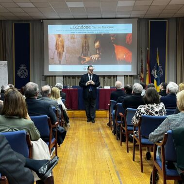 El Conferenciante acercó a los presentes los aspectos más relevantes que rodean la santa síndone que se cree envolvió el cuerpo de Jesús en su última morada. Una vez analizados los aspectos históricos del recorrido de esta dio paso de la tradición a la ciencia mostrando lo que los científicos han podido decir sobre este sudario, de grandes dimensiones, acorde con los entierros del siglo I.
