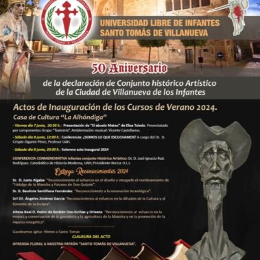 El sábado 8 de junio tenía lugar en la Casa de Cultura-Alhóndiga de Villanueva de los Infantes, la inauguración de los Cursos de Verano de la Universidad Libre de Infantes ‘Santo Tomás de Villanueva’, así como la gala de entrega de reconocimientos.