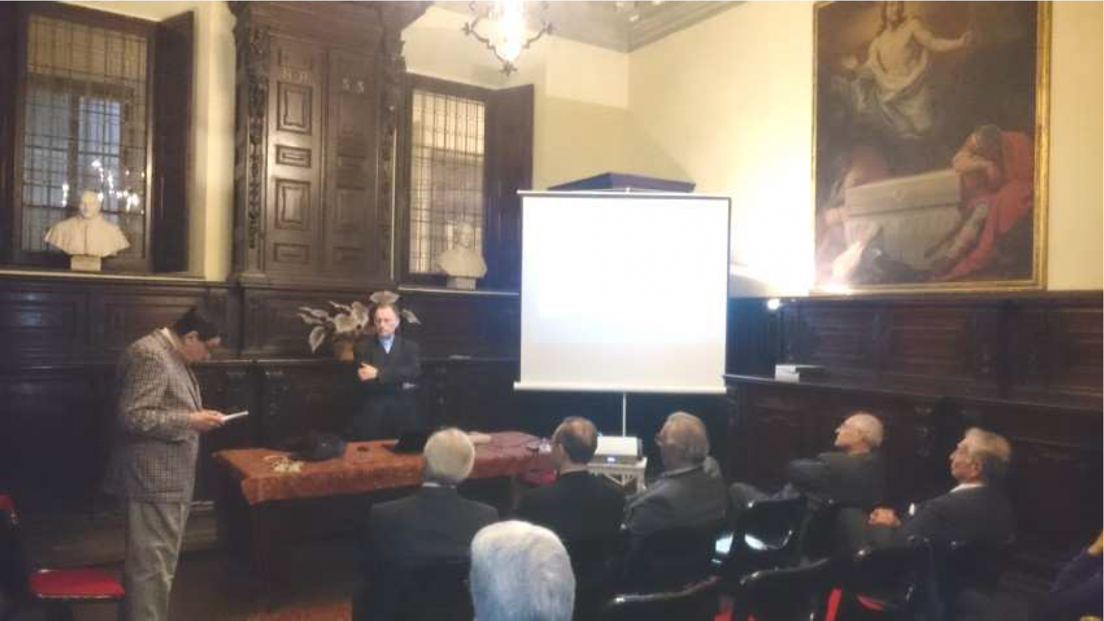 La successiva conferenza ha visto l’esposizione di Mons. Navoni nell’ambito del Ciclo di presentazione dei Confratelli all’interno del programma culturale curato dal Cav. Prof. Edoardo Brioschi, docente presso l’Università Cattolica di Milano, apertosi lo scorso gennaio con l’intervento del Prefetto dell’Ambrosiana Mons. Franco Buzzi sulla sfascicolatura epocale del Codice Atlantico e proseguito a marzo con l’esposizione del Cav. Luca Di Francesco sulla Pala d’Altare da lui realizzata per la prestigiosa Fondazione RUI. Mons. Navoni è stato Direttore della Pinacoteca Ambrosiana dal 1991 al 2013, acquisendo in questo modo competenze anche nell’ambito della storia dell’arte e della museologia. Ha collaborato alla grande campagna di sfascicolazione del Codice Atlantico ed alle mostre cicliche dei fogli leonardiani in sala Federiciana.