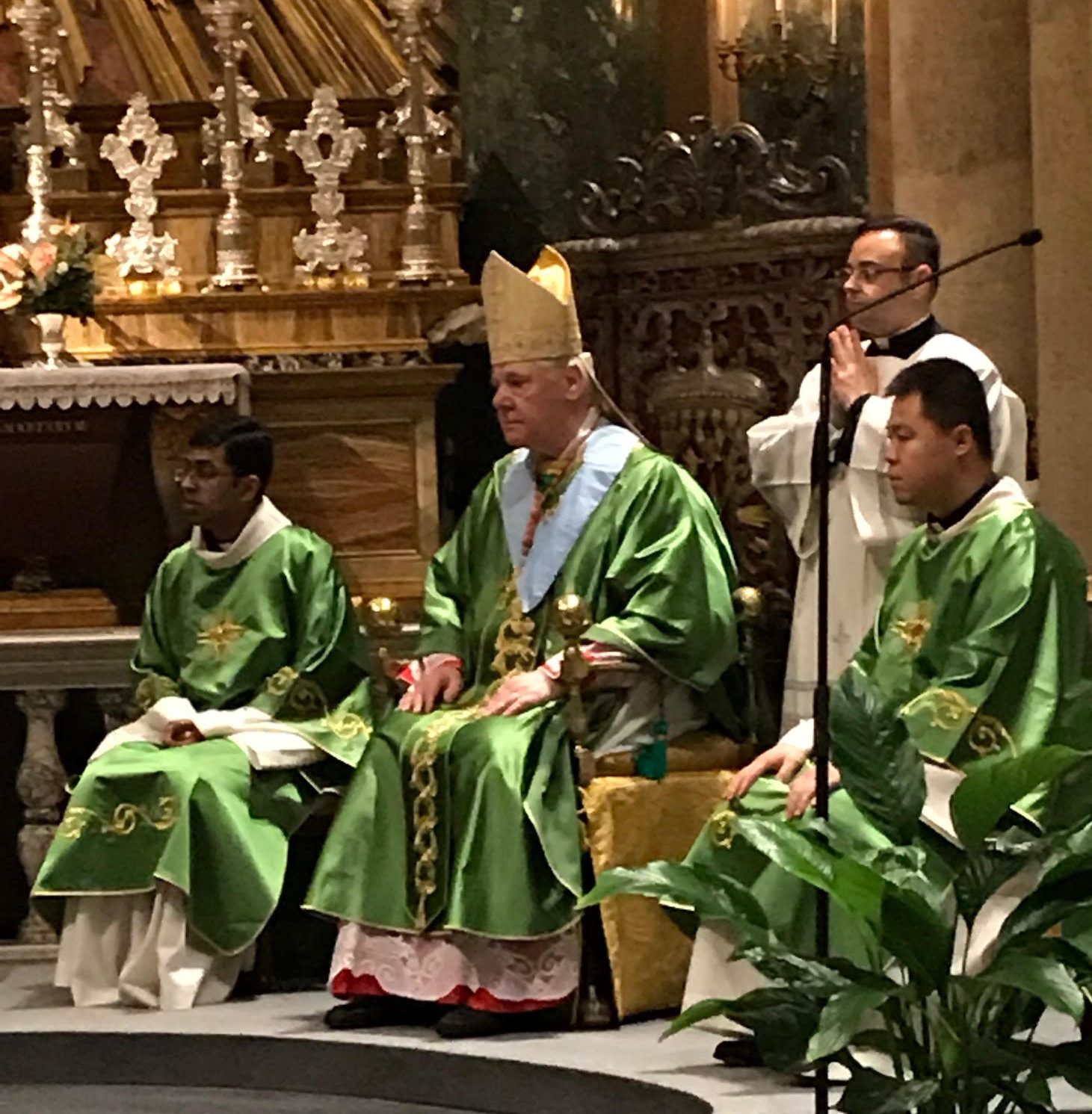 Prima della celebrazione eucaristica il Parroco Mons. Pietro Bongiovanni Cappellano di Merito con Placca, ha reso omaggio al Cardinale Gran Priore e ringraziato per loro presenza la Delegazione di Roma e i Cavalieri Costantiniani che hanno voluto partecipare ai primi sabati del mese dedicati alla Beata Vergine Maria nella chiesa santuario Lauretano nell’Urbe.