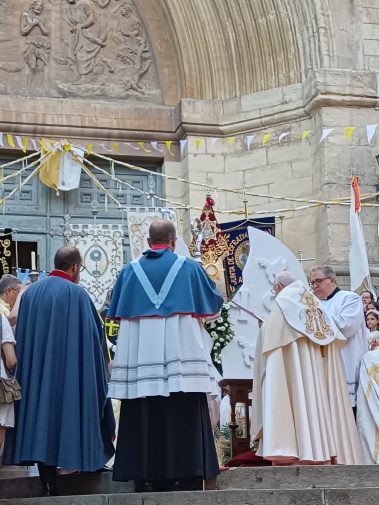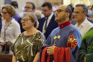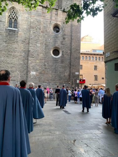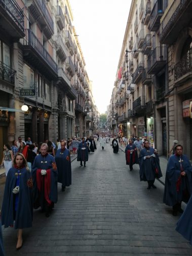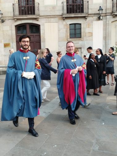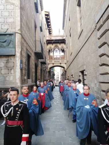 El día 19 de junio, solemnidad del Corpus Christi, la Delegación de Cataluña asistió, una vez más, a la Eucaristía celebrada en la explanada de la Santa Iglesia Catedral Basílica Metropolitana de la Santa Cruz de Barcelona y a la posterior procesión por las calles de la Ciudad, que en esta ocasión tuvo un recorrido mayor que en años anteriores.