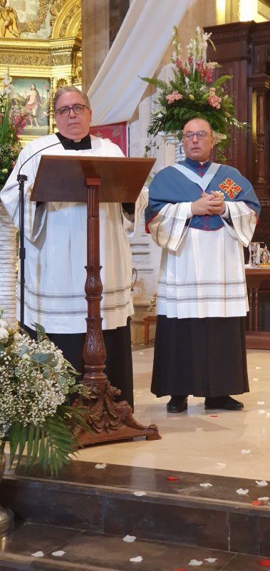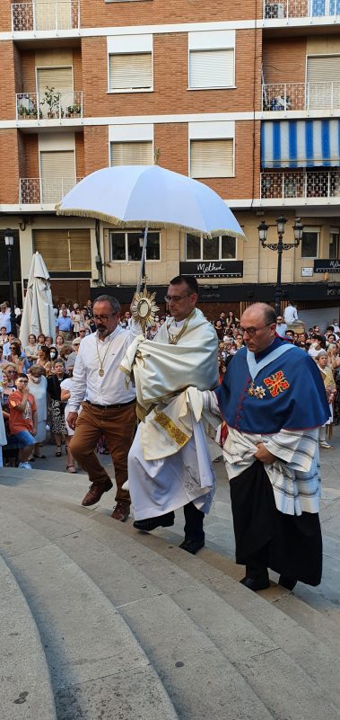 La Orden Constantiniana ha colaborado de la mano del cabildo catedralicio en la organización de dicha procesión. Terminada la misma, se impartió la bendición con el Santísimo Sacramento desde la puerta de la Catedral situada en la Plaza de la Catedral, pasando posteriormente al templo catedralicio donde los caballeros asistentes mantuvieron un encuentro con monseñor Fernández Collado el cual les trasladó un saludo fraternal y su agradecimiento en la participación y la excelente organización de la celebración de dicha solemnidad.