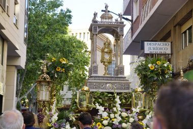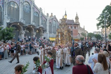 La custodia procesional de la Catedral, obra de Francisco Pajarón Suay considerada la más grande del mundo que fue realizada gracias a las donaciones de los valencianos, volvió a recorrer las calles de Ciutat Vella en procesión tras dos años sin poder celebrarse en la forma tradicional -en 2021 se realizó un pequeño recorrido a causa de la pandemia-, acompañada en todo momento por fieles.