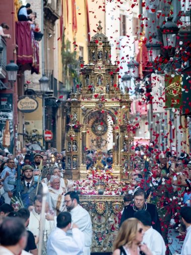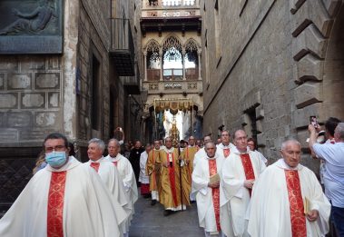 La procesión del Corpus de Barcelona es la más antigua de España y una de las más antiguas de Europa (documentada desde 1320). En ella el Cuerpo Sacramentado de Jesús es venerado en una custodia gótica que reposa en el trono de plata del rey Martín el Humano, tradición que se observa, al menos desde el siglo XV.