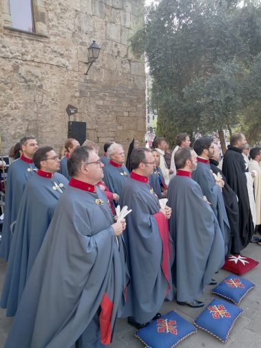 Los caballeros y damas de la Delegación que participaron en los Sagrados Ritos, se reunieron en la capilla de la Visitación en la Catedral, sede canónica de la Orden en Cataluña. Respondiendo a la amable invitación anual del Capítulo Catedralicio, ocuparon su lugar reservado junto al resto de las Órdenes Ecuestres.