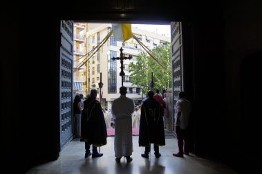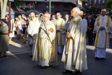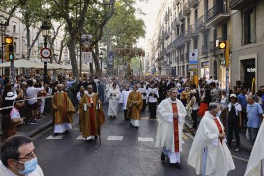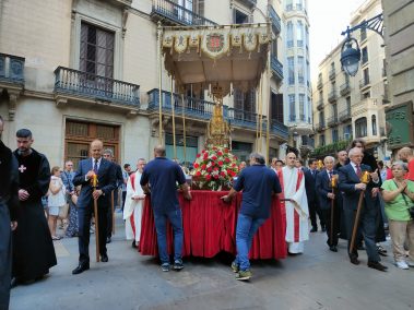 Al finalizar la procesión cumplimentaron a S. Em.ª Rvdma. Don Juan José, Cardenal Omella, Arzobispo de Barcelona, quién amablemente les agradeció un año más su participación.