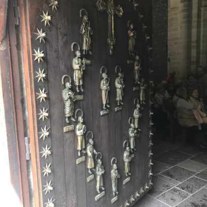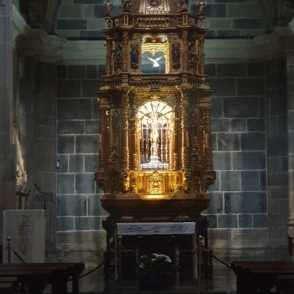 De pronto todo se vuelve maravilloso y evocador, lo hemos logrado y sin muchos contratiempos, tenemos tiempo para un café en un puesto ambulante bajo la lluvia, pero no nos importa, estamos exultantes. Es el momento de comprar algún recuerdo y ver la iglesia y el claustro con detenimiento hasta la misa del peregrino que se celebra a las 12 de la mañana.