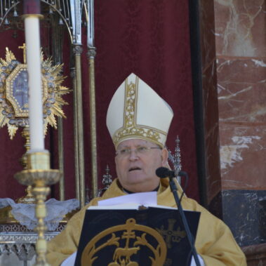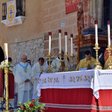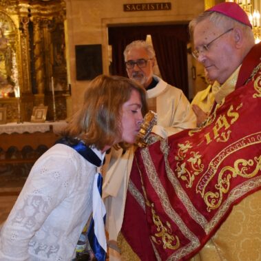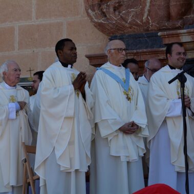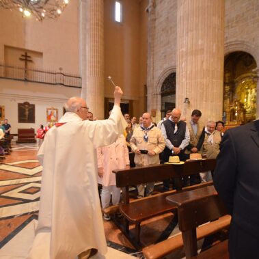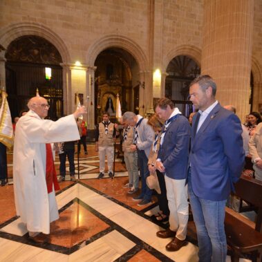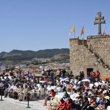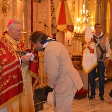 Al mediodía se celebró la Santa Misa del peregrino en la lonja de la fortaleza. Una celebración que estuvo presidida por el Excmo. y Rvdmo. Sr. obispo de la diócesis de Cartagena, Monseñor D. José Manuel Lorca Planes y en la que participaron miles de fieles y entre ellos miembros y familiares de la Orden.