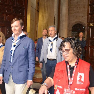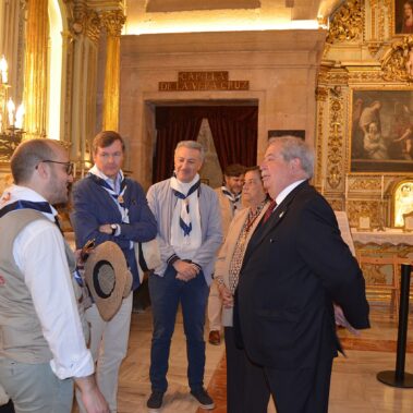 A su llegada a la iglesia Mayor de El Salvador fueron recibidos por el Excmo. Sr. D. Álvaro Zuleta de Reales y Ansaldo, Duque de Linares (G.d.E.), presidente de la Comisión de la Orden para el Reino de España; el Excmo. Sr. Don Carlos Abella y de Arístegui, Embajador de España y consejero de la Real Diputación; Ilmo. Sr. D. Rafael Marcos y Pardo, delegado en Castilla-La Mancha y Murcia; Excmo. Sr. D. Juan Luis Doncel y Paredes, delegado de Aragón, Navarra y de La Rioja; Ilmo. Sr. D Antonio Calvo y Rubio, delegado del Cantábrico y el Ilmo. Sr. D. Francisco-Javier Fernández y Auñón, delegado en la Comunidad Valenciana.