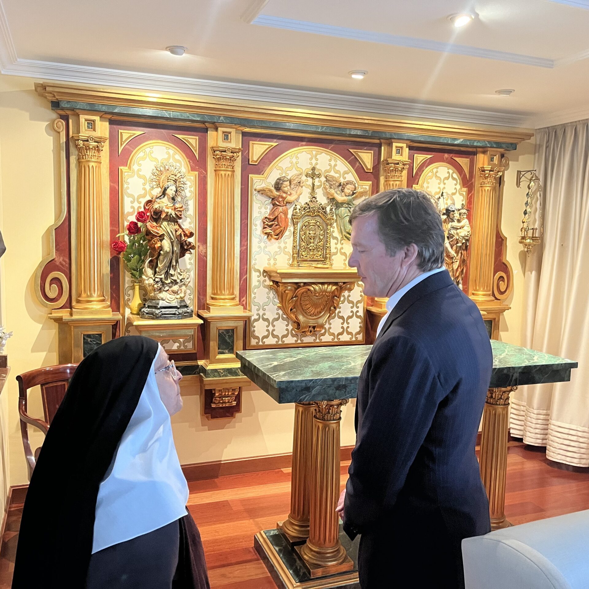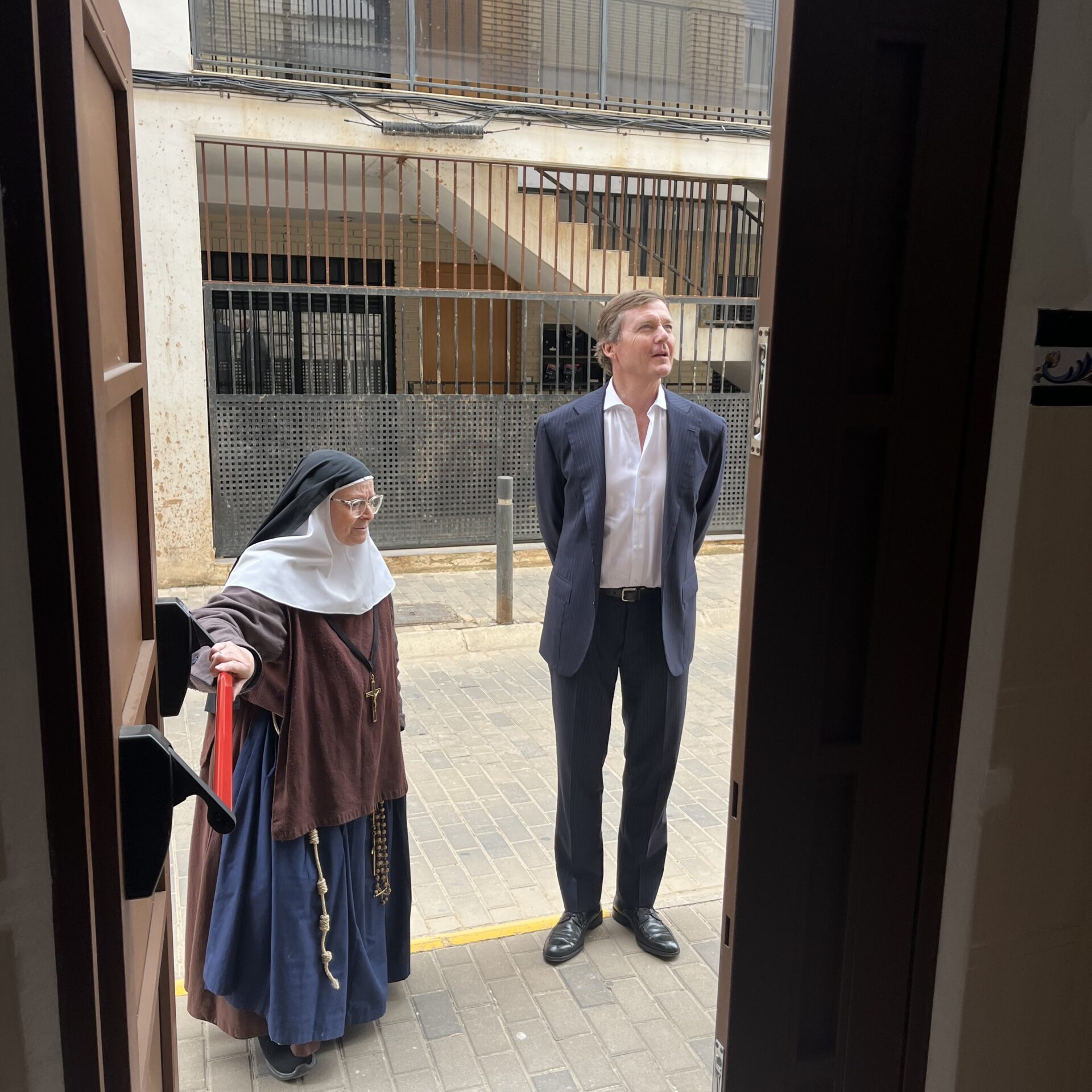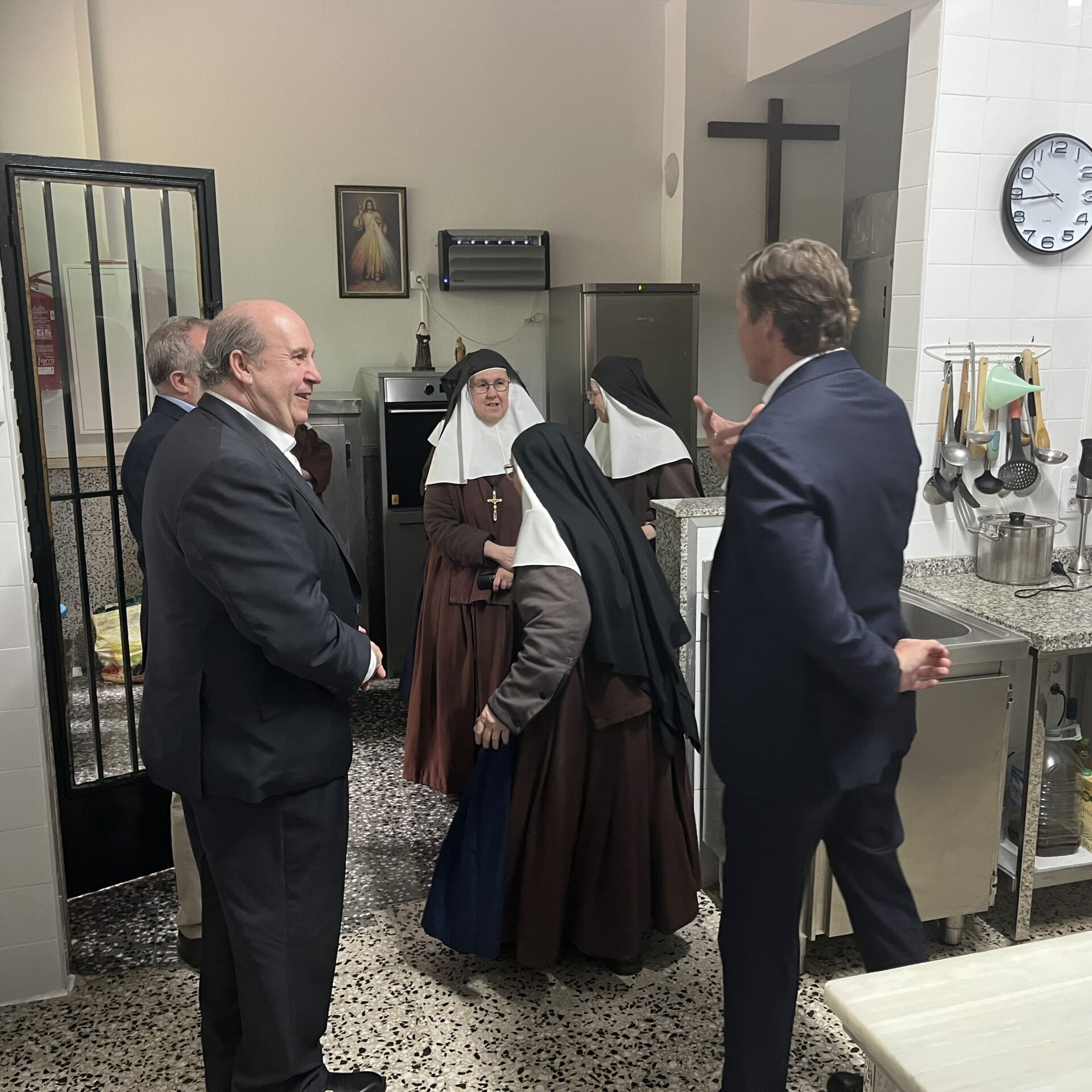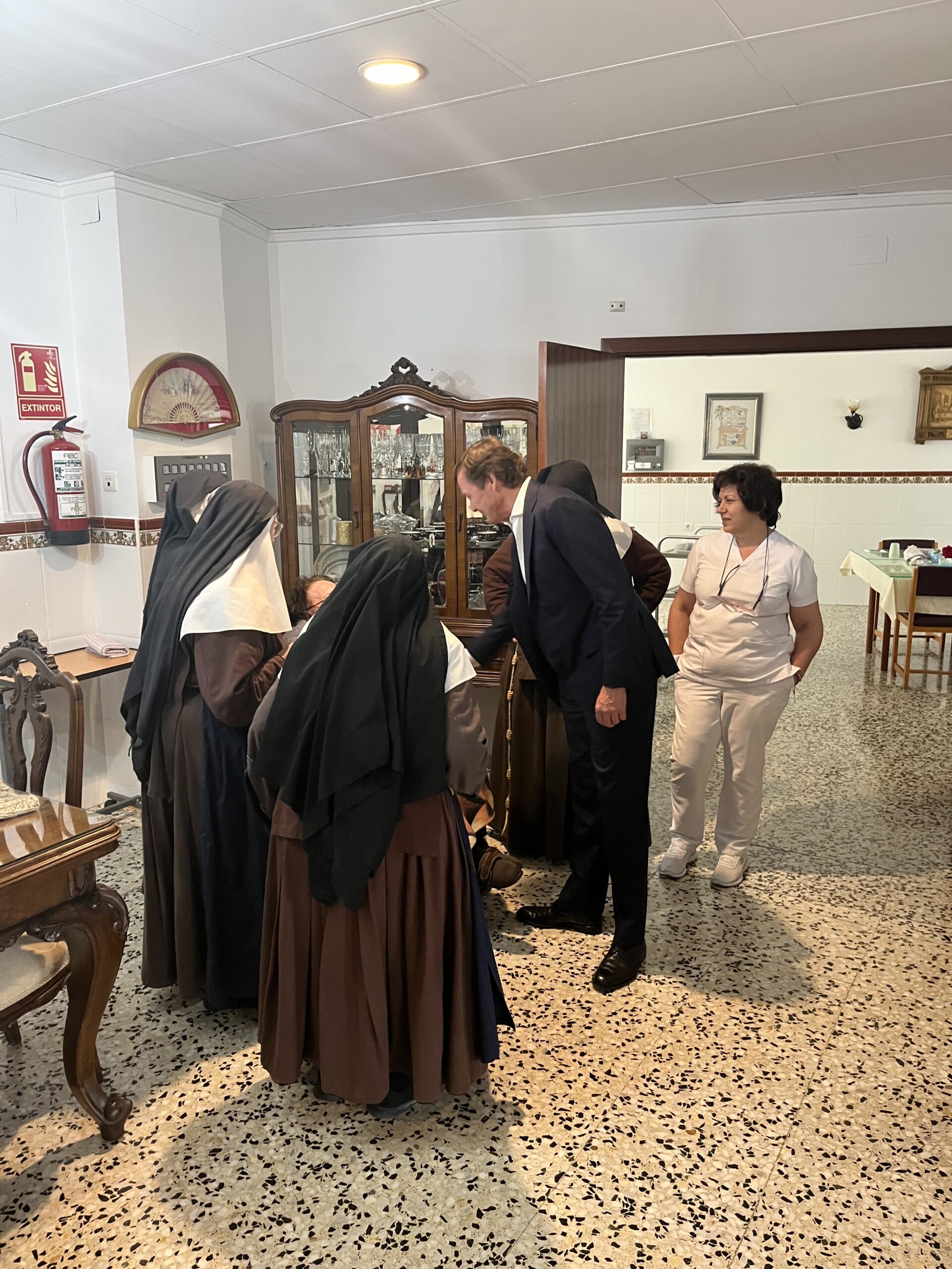 El Duque de Calabria ha visitado la residencia Inmaculada Concepción de Aldaya, regentada por las hermanas de la Compañía de la Cruz. Durante el recorrido ha querido comprobar que todos los trabajos se están realizando bien y verificar que se está dando respuesta a temas concretos y de alcance en materia de necesidad. Se han realizado avances importantes en las tareas de reconstrucción priorizando las acciones en favor de las necesidades urgentes en las personas mayores en la zona damnificada por la Dana, en este caso concreto en Aldaya para que no falten los elementos esenciales.