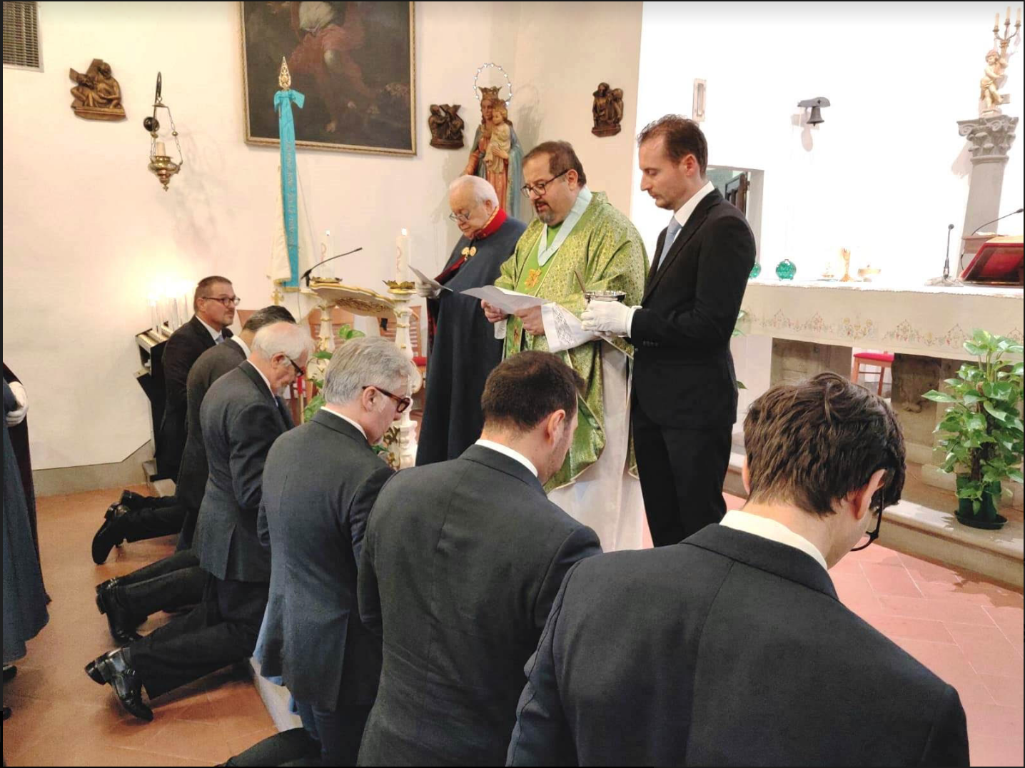 La Santa Messa è stata celebrata dal Cappellano Don Mirko Mochi, che, nell’Omelia, ha voluto evidenziare come il mantello costantiniano, segno di devozione alla Santa Croce, impegni chi lo indossa ad una vita cristiana nella Fede e nelle opere.