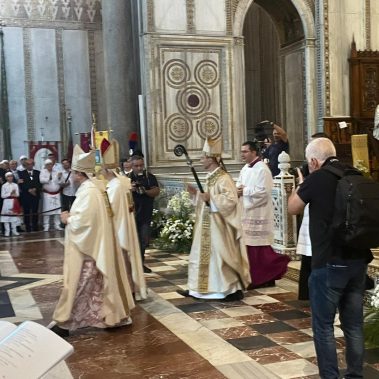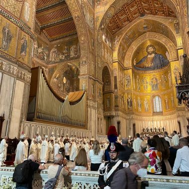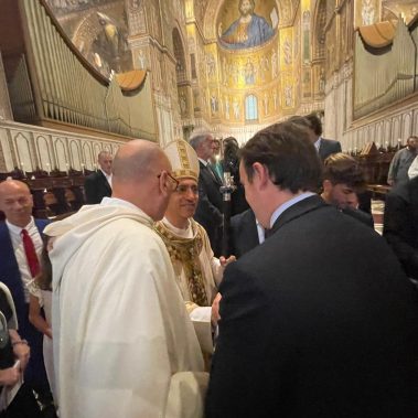 Por la tarde Sus Altezas Reales, acompañados del Noble Prof. Salvatore Bordonali de Pirato Delegado para Sicilia Occidental de la Orden Constantiniana, subieron a la colina de Monreale para participar en la consagración episcopal y toma posesión canónica de Mons. Gualtiero Federico Isacchi, nombrado por el Papa Francisco como 58º Arzobispo de Monreale. Al término del Solemne y Sagrado Rito, al que asistieron los Obispos de Sicilia, los Príncipes saludaron brevemente al nuevo Arzobispo de Monreale en el presbiterio. Posteriormente, durante una larga y amable entrevista privada en el Palacio Arzobispal, el Príncipe Don Jaime de Borbón Dos Sicilias confirmó al Arzobispo de Monreale el apoyo de la Familia Real y de la Orden Constantiniana a todo lo que pueda ayudar a la Diócesis y a las obras de caridad en la acción pastoral llevada a cabo por Monseñor Isacchi.