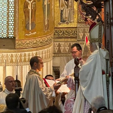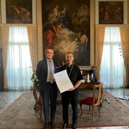 El Duque de Noto, como Gran Prefecto de la Sagrada Milicia, entregó luego al Arzobispo de Monreale el diploma de concesión – otorgado por Su Alteza el Duque de Calabria y Conde de Caserta, Gran Maestre de la Sagrada Orden Militar Constantiniana de San Jorge- del grado de Capellán Gran Cruz y la insignia de esta alta dignidad con un mensaje de Su Aaugusto padre referido al inicio de su liderazgo como pastor del Pueblo de Dios en Monreale.